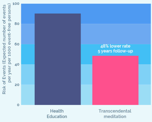 A five-year study on patients with coronary heart disease reported a 48% reduction in heart attack, stroke and death among those practicing Transcendental Meditation compared to other controls.